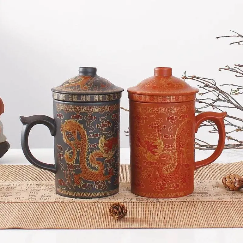 Diese Teetasse verkörpert traditionelle chinesische Ästhetik und verfügt über ein integriertes Sieb, das die Bedürfnisse von Teeliebhabern erfüllt, die sowohl funktionales Design als auch ansprechende Optik schätzen. Jede Tasse ist individuell handgefertigt und zeugt von handwerklichem Können und Liebe zum Detail, die sie von Massenware unterscheidet.