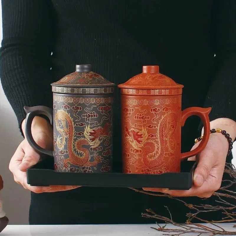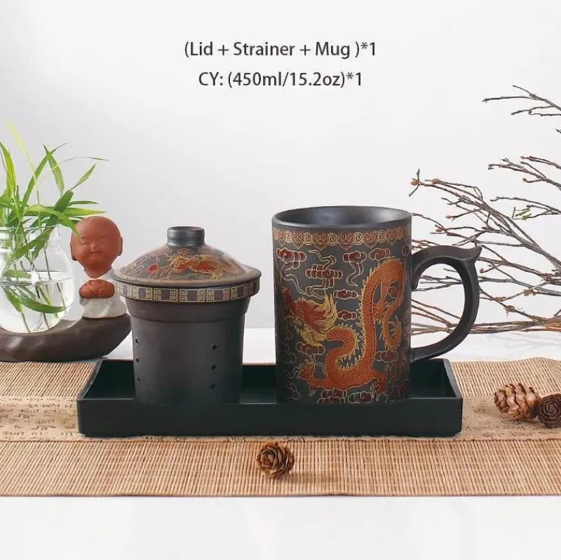 Erleben Sie die Kunst des Teetrinkens mit unserer handgefertigten Yixing-Teetasse mit integriertem Deckelsieb für komfortables Aufbrühen. Diese einzigartige Teetasse wurde sorgfältig aus hochwertigem Zisha-Ton gefertigt und fasst großzügige 450 ml. Damit ist sie der ideale Begleiter für Ihre täglichen Teerituale.