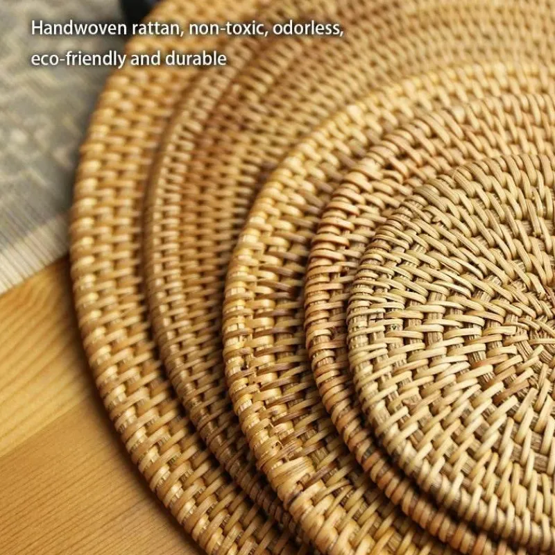 Verwandeln Sie Ihren Wohnbereich mit diesem schicken und praktischen Rattan-Untersetzer-Set. Es verbindet Stil mit effektivem Schutz für Ihre Möbel. Frischen Sie Ihre Tischdekoration noch heute mit diesen exquisiten Untersetzern auf.