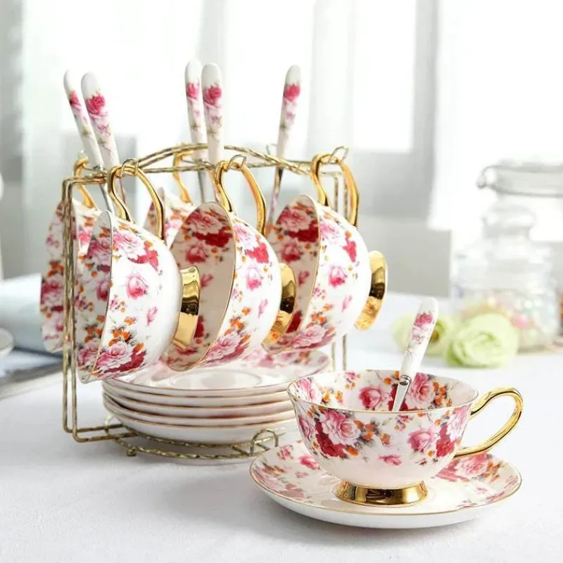 Inspiriert vom europäischen Design fängt dieses Teeservice den Charme des traditionellen Teeservices ein und macht jeden Schluck zu einem Moment des Luxus. Hergestellt aus hochwertigem Bone China, vereint es optische Attraktivität mit der nötigen Robustheit für den täglichen Gebrauch.