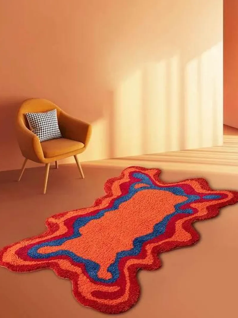Der aus hochwertigen Materialien gefertigte Teppich besticht durch seine weiche Textur, die sich angenehm unter den Füßen anfühlt und in jedem Raum für Komfort sorgt. Dank seiner robusten Konstruktion ist er langlebig und eine praktische Ergänzung Ihrer Einrichtung. Ob Sie Ihrem Wohnzimmer verspielte Energie verleihen oder den Geist der 70er Jahre in Ihrem Zuhause wecken möchten – dieser Retro-Teppich ist ein faszinierendes Statement, das Ihre Designelemente harmonisch verbindet. Verwandeln Sie Ihren Raum mit einem Hauch von nostalgischem Charme und modernem Flair.