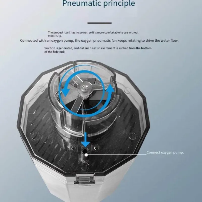 Die Einrichtung des Geräts ist einfach: Stellen Sie es einfach in Ihr Aquarium und schließen Sie es an eine Luftpumpe an. Sobald das Abfallfach voll ist, lässt es sich leicht entleeren und desinfizieren. So ist eine gründliche Reinigung gewährleistet, bevor es wieder in Ihrem Becken eingesetzt wird.