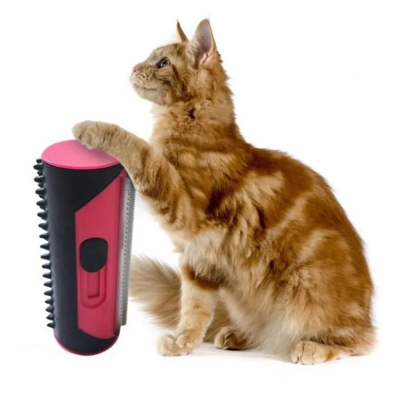 Dieses Pflegewerkzeug ist mit drei einziehbaren Edelstahlkämmen mit kurzen Zähnen ausgestattet, die Haare und Fasern effizient entfernen und so eine schnelle und gründliche Fellpflege gewährleisten. Geeignet für Katzen und Hunde, entfernt es effektiv lose Haare und unerwünschten Schmutz und sorgt für ein sauberes und gepflegtes Fell Ihres Haustieres.