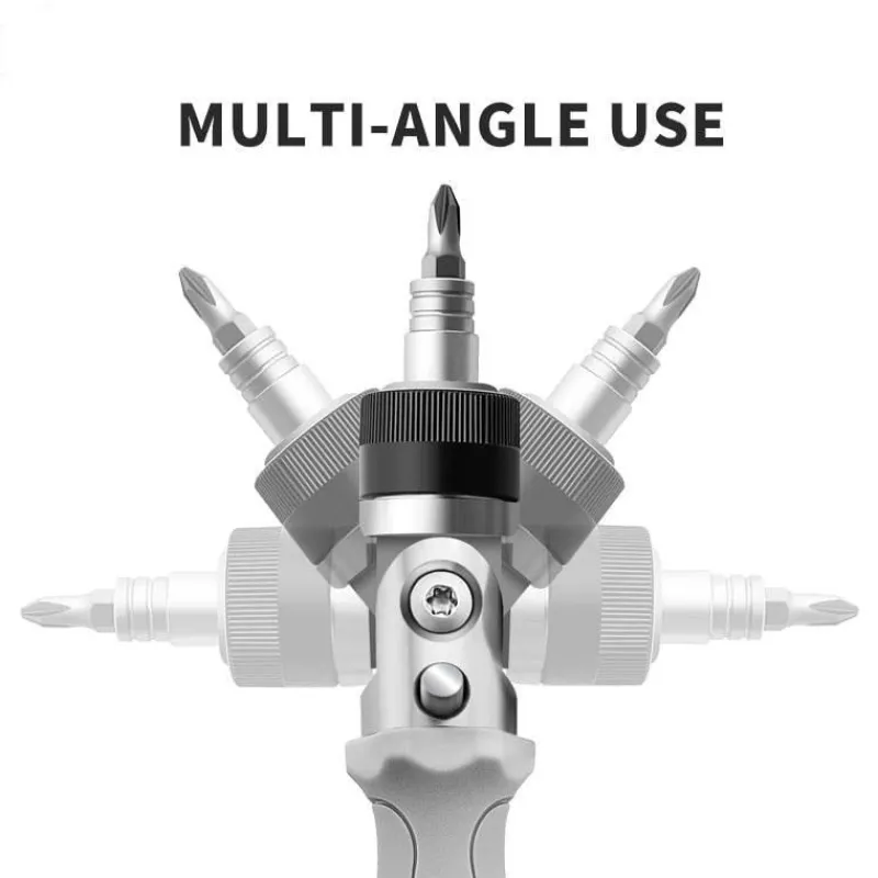 Entdecken Sie die Vielseitigkeit des Mehrwinkel-Schraubendreher-Sets – ein unverzichtbares Werkzeugset für Ihr Heimwerken. Dieses durchdachte Set enthält verschiedene Köpfe, sodass Sie für jede Aufgabe den perfekten Aufsatz haben. Die Schäfte aus robustem Chrom-Vanadium-Stahl bieten außergewöhnliche Festigkeit und Langlebigkeit, während die Gummigriffe einen komfortablen und sicheren Halt bieten. Praktisch verpackt in einer Tragetasche bietet dieses Set die Flexibilität für unterwegs.