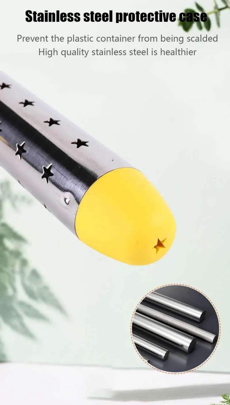 Dieser Tauchsieder wurde mit Blick auf Sicherheit und Langlebigkeit gefertigt und verfügt über eine Schutzschicht aus Edelstahl 304, die sicherstellt, dass er auch bei längerem Einsatz im Wasser rostfrei bleibt. Die Konstruktion verhindert direkten Kontakt mit dem Heizelement und reduziert so das Verbrennungsrisiko deutlich. Sollte die Wassertemperatur 70 °C überschreiten, schaltet der Heizer automatisch ab – für zusätzliche Sicherheit und ein beruhigendes Gefühl.