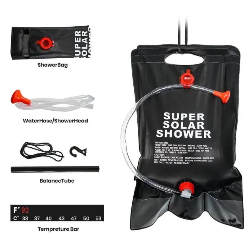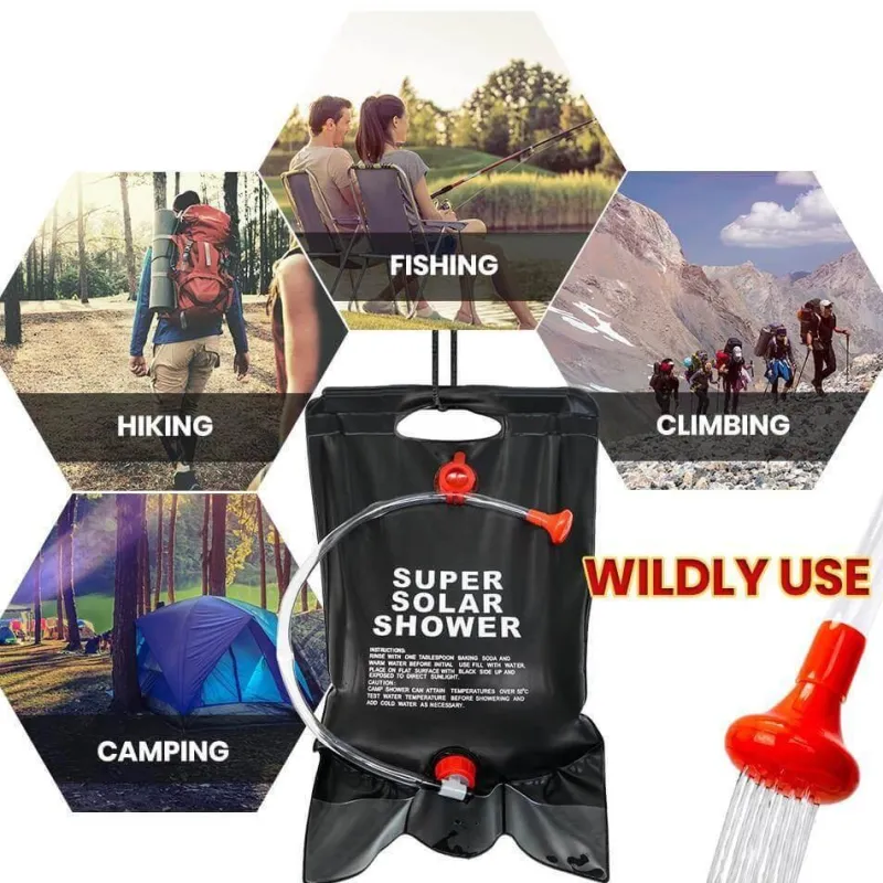 **Großes Fassungsvermögen:** Mit einem großzügigen Fassungsvermögen von 5 Gallonen (20 Litern) bietet diese Solar-Campingdusche reichlich Wasser für mehrere Duschen und ist somit ideal für Soloausflüge oder Gruppenabenteuer.