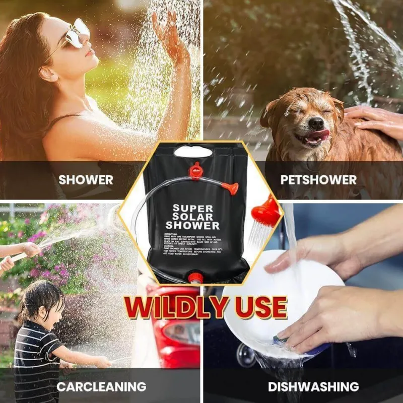 Erleben Sie den Komfort einer warmen Dusche in der freien Natur mit unserem tragbaren Solar-Duschbeutelsystem. Dieser innovative Camping-Duschbeutel sorgt für Sauberkeit bei Ihren Outdoor-Abenteuern und eignet sich nicht nur zum Duschen, sondern auch zum Waschen von Haustieren und Geschirr. Dieser solarbetriebene Duschbeutel wurde für mehr Effizienz entwickelt und sorgt für Komfort bei Ihrem nächsten Campingausflug, da das Wasser natürlich von der Sonne erwärmt wird. Er lässt sich leicht entleeren und ist einfach zu transportieren – für ein erfrischendes Erlebnis, egal wohin Ihre Reise Sie führt. Der Beutel lässt sich leicht befüllen und ist komfortabel in der Handhabung, damit Sie saubere Momente im Freien genießen können. Er ist wasserabweisend und langlebig und lässt sich bei Nichtgebrauch leicht verstauen.