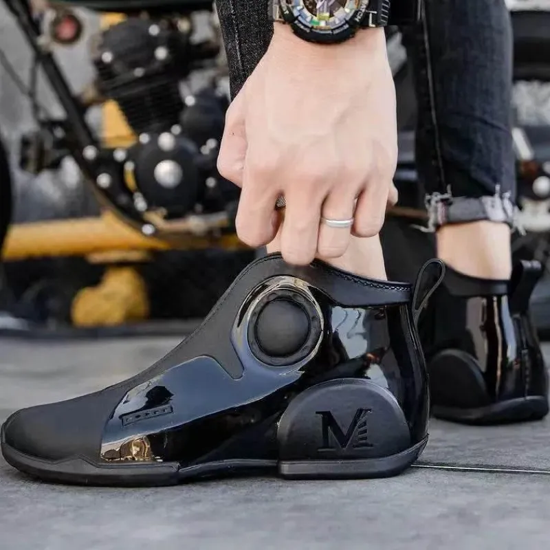 Entdecken Sie die ideale Kombination aus futuristischem Stil und praktischer Funktionalität mit unseren wasserdichten Regenstiefeln im markanten Cyberpunk-Look. Diese Stiefel aus hochwertigem Gummi verfügen über eine rutschfeste Laufsohle, die Sicherheit und Komfort auf nassen Oberflächen gewährleistet. Ihr markantes und auffälliges Design macht sie zur perfekten Wahl für alle, die auch an regnerischen Tagen ihre Individualität unter Beweis stellen möchten.
