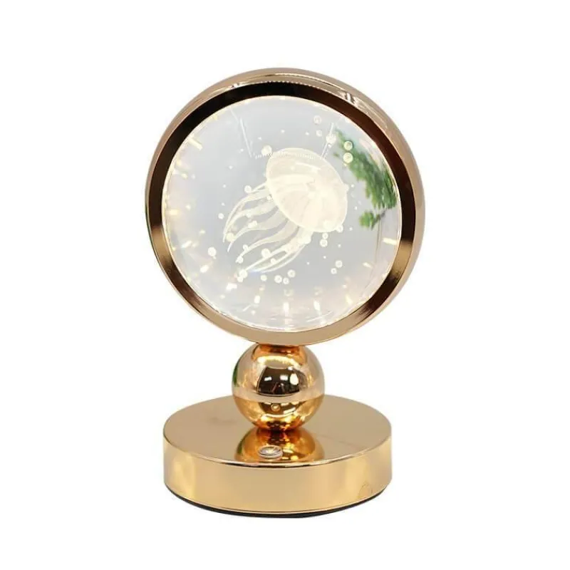 Verwandeln Sie Ihren Wohnraum mit der bezaubernden Tischleuchte „Crystal Jellyfish“, einer dekorativen LED-Leuchte, die jedem Raum ein fantasievolles Element verleiht. Die aus robustem Metall und elegantem Kristall gefertigte Leuchte besticht durch ihr faszinierendes Quallen-Design, das einen faszinierenden Lichteffekt erzeugt.