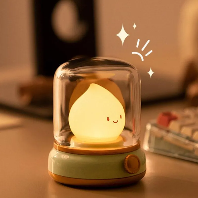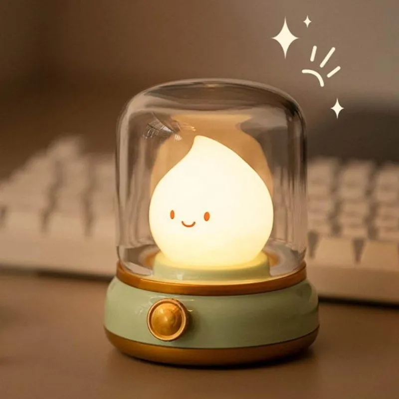 Erhellen Sie Ihren Raum mit unserem charmanten Retro-Flammen-Nachtlicht, das die einladende Atmosphäre einer Vintage-Öllampe einfängt. Diese kompakte, per USB aufladbare Lampe verfügt über stufenloses Dimmen und eine praktische Timerfunktion. Damit schafft sie eine sanfte, gemütliche Atmosphäre an Ihrem Bett und schont gleichzeitig Ihre Augen bei nächtlicher Nutzung.
