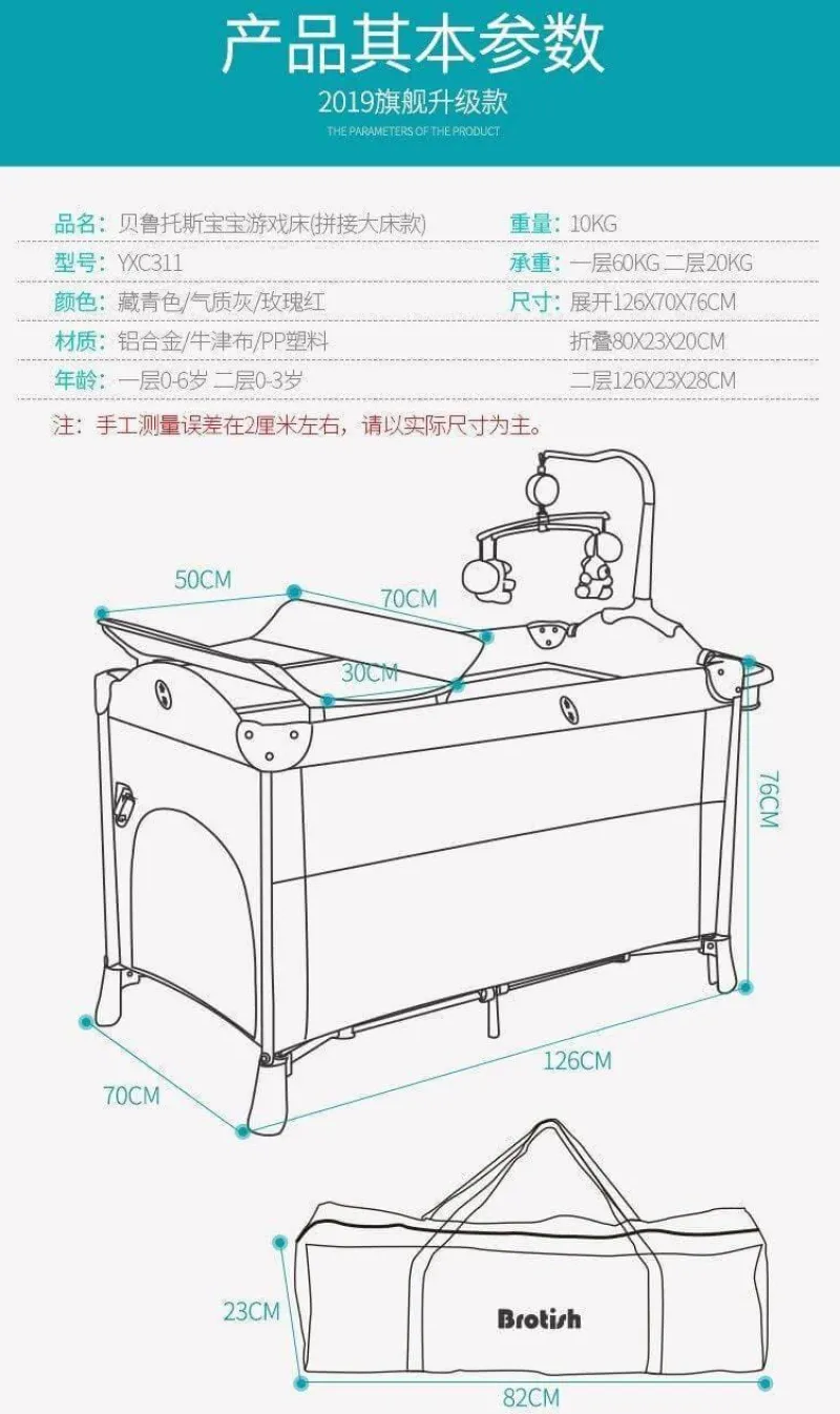 Wir präsentieren ein vielseitiges und praktisches Babybett für Babys und Kleinkinder vom Neugeborenen bis zum Alter von 6 Jahren. Dieses multifunktionale, faltbare Kinderbett aus strapazierfähigen Materialien wie Eisen, Oxford-Stoff und PP-Kunststoff vereint Robustheit und Komfort. Das Bett bietet mit seinen geräumigen Abmessungen von 126 x 70 x 76 cm ausreichend Platz für Ihr Kind zum Entspannen und ruhigen Schlafen. Bei Nichtgebrauch lässt es sich einfach auf die kompakte Größe von 80 x 23 x 20 cm zusammenfalten und so bequem verstauen oder transportieren.