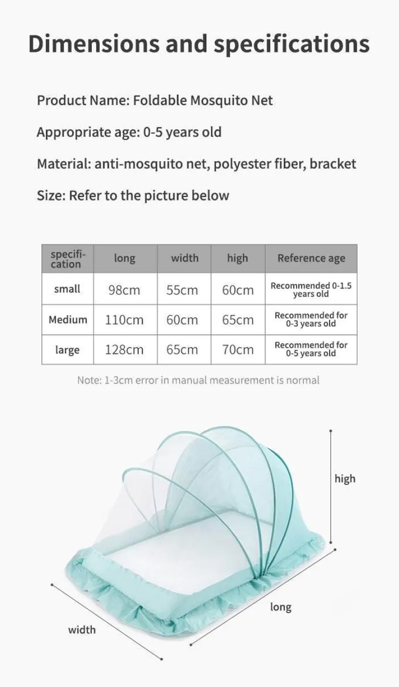 Schützen Sie Ihr Baby mit diesem faltbaren Baby-Moskitonetz vor lästigen Mücken und anderen Insekten. Das praktische Insektenschutznetz lässt sich leicht transportieren und verstauen und ist somit eine praktische Wahl für Familien, die viel unterwegs sind.
