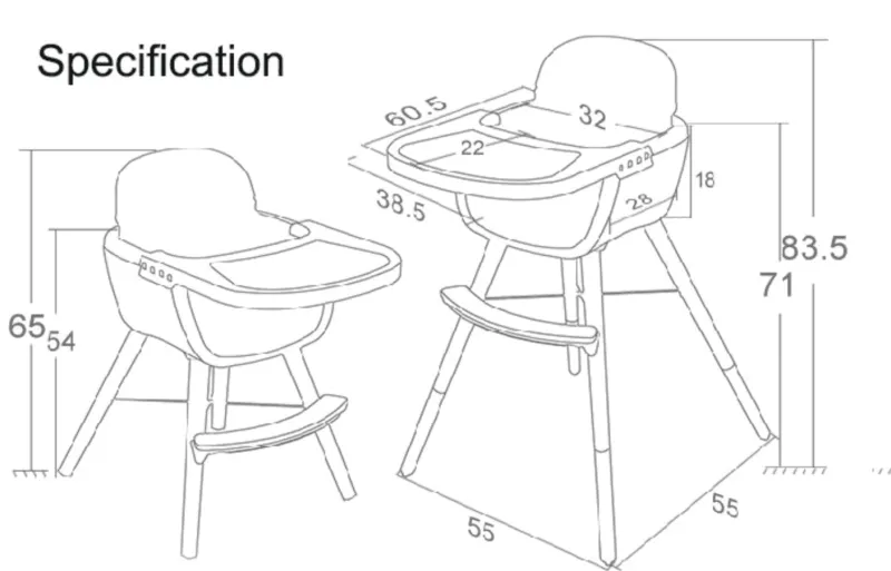 Der umbaubare, multifunktionale Baby-Essstuhl mit abnehmbaren Beinen ist eine praktische Ergänzung für Ihr Zuhause und wurde so konzipiert, dass er mit Ihrem Kind mitwächst. Dank der abnehmbaren Beine lässt sich dieser vielseitige Stuhl ganz einfach in einen Tisch verwandeln. Dank der verstellbaren Höhe ist er für Kinder von 3 Monaten bis 3 Jahren geeignet und somit sowohl für Säuglinge als auch für Kleinkinder.
