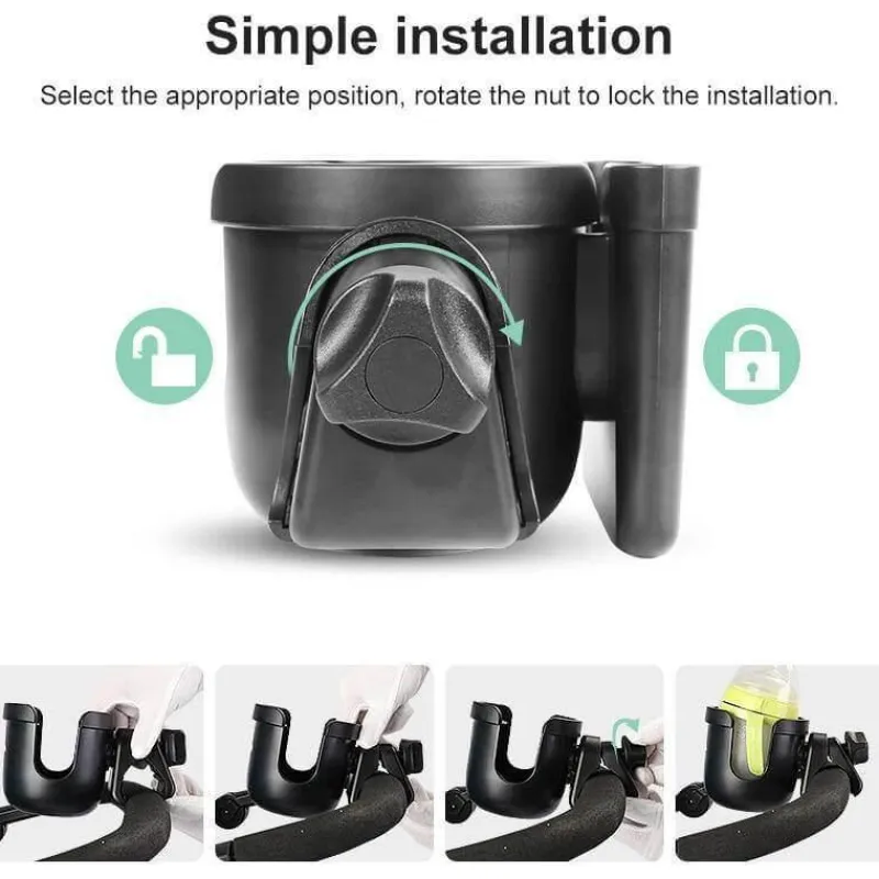 3. Kompatibilität mit verschiedenen Bechern: Der Halter ist für eine Reihe von Reisebechern geeignet und bietet eine praktische Lösung für Eltern, die oft keinen Platz zur Aufbewahrung ihrer Getränke haben.