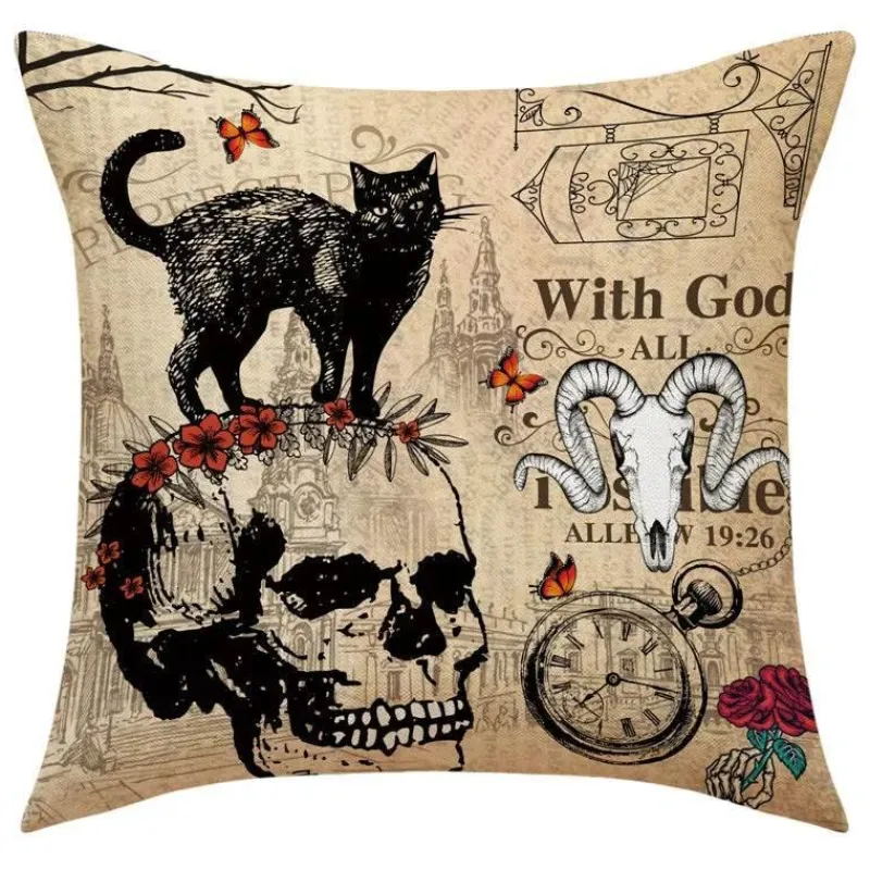 Feiern Sie Halloween stilvoll mit den Totenkopf-Kürbis-Kissenbezügen, die Ihrem Zuhause einen Hauch gruseliger Eleganz verleihen. Diese Kissenbezüge aus 100 % Leinen und weicher Baumwolle vereinen Komfort mit einzigartigem, festlichem Charme.
