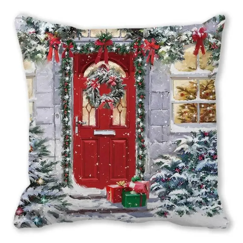 Mit seinem charmanten, szenischen Design verleiht es Ihrem Raum mühelos Eleganz und Wärme und eignet sich perfekt für Sitzkissen oder Rückenkissen. Dieser Kissenbezug soll Ihre Umgebung aufhellen und eine festliche Atmosphäre schaffen.