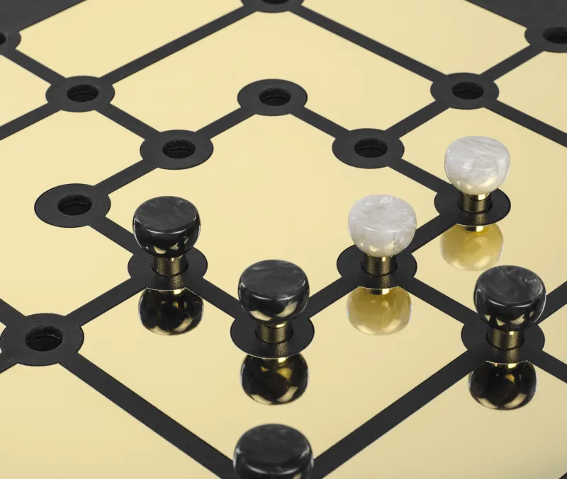 We are thrilled to present the Mill game, a sophisticated strategy board game that adds a touch of elegance to any setting.