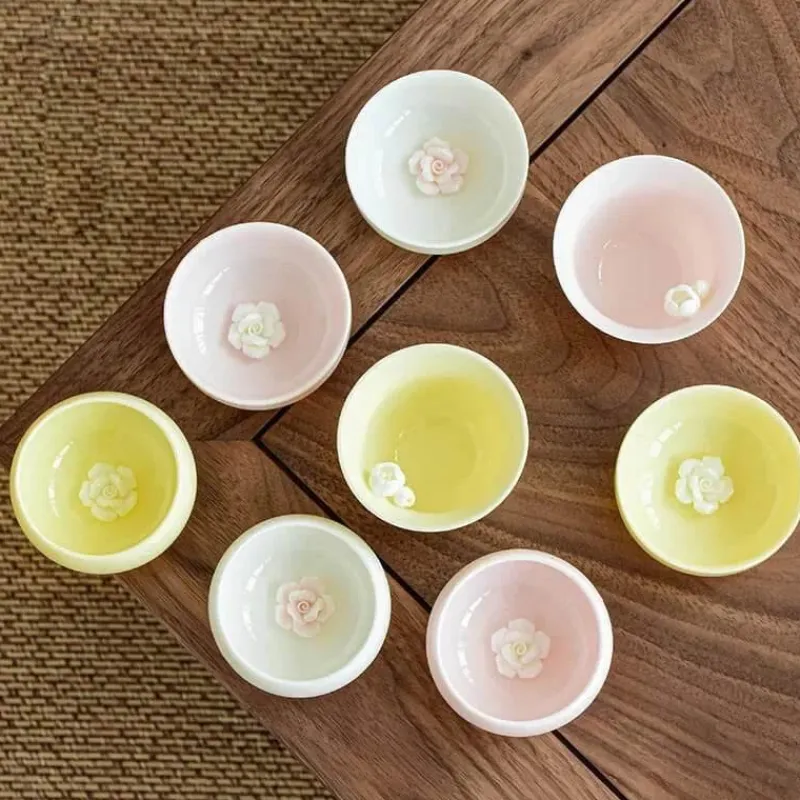 Erleben Sie Eleganz und Charme mit unserem Flower Ceramic Teetassen-Set, fachmännisch gefertigt aus hochwertigem chinesischem Porzellan. Jede Tasse zeichnet sich durch eine zarte Pigmentierung aus und verleiht Ihrem Teeritual eine künstlerische Note.