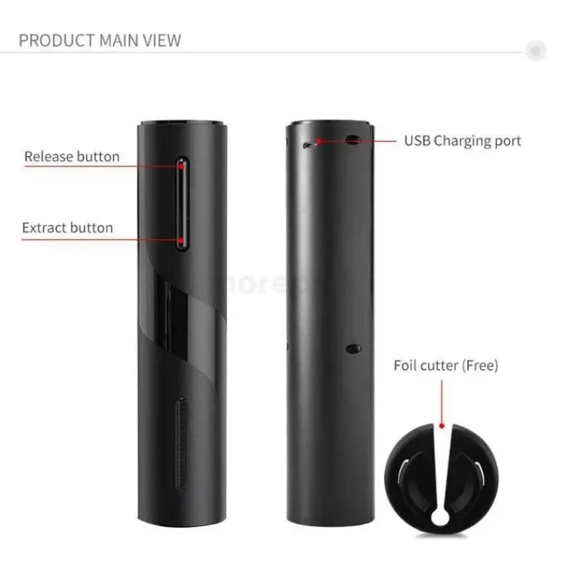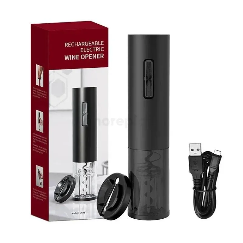 Dieser elektrische Korkenzieher lässt sich bequem per USB aufladen und wird von einem robusten 6-V- und 25-W-Motor angetrieben. Er nutzt zuverlässige NiMH- oder Lithium-Batterien für den Langzeitgebrauch. Einfach einstecken und schon können Sie mühelos Ihre Lieblingsweine entkorken.