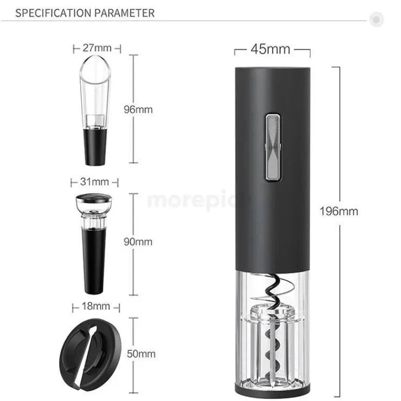 Dieser Korkenzieher ist mehr als nur ein herkömmlicher Weinöffner. Er verfügt über eine automatische Korkenentfernung und ein intuitives Design, das ihn für jedermann benutzerfreundlich macht. Ob Sie eine festliche Feier veranstalten oder nach einem langen Tag entspannen – dieser elektrische Korkenzieher macht das Öffnen von Wein zu einem einfachen und angenehmen Vorgang.
