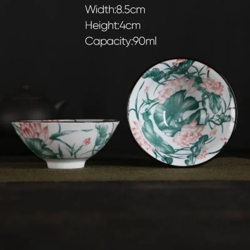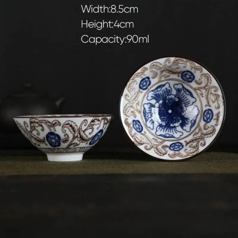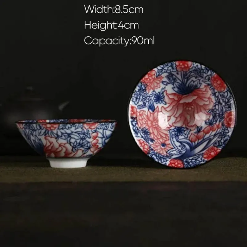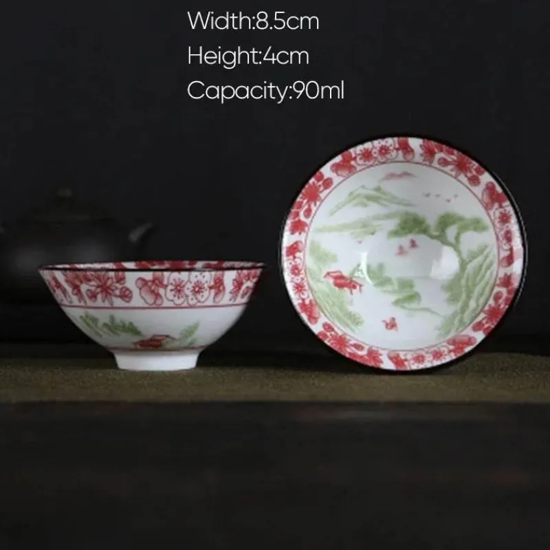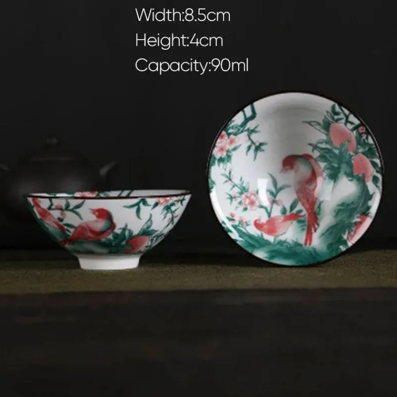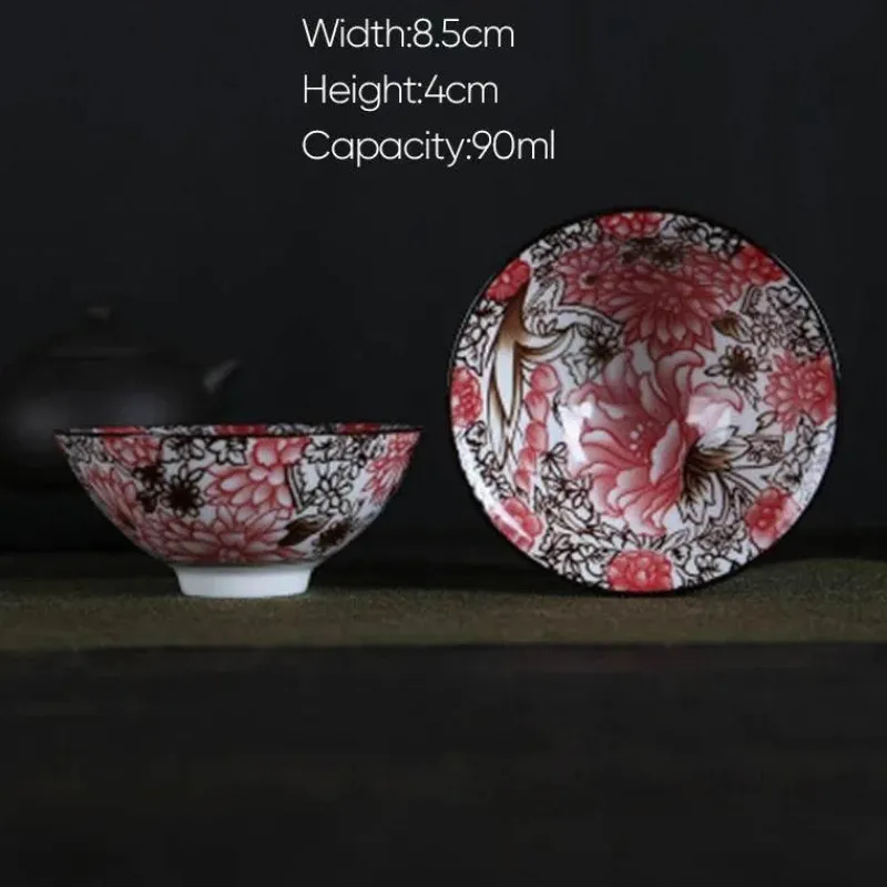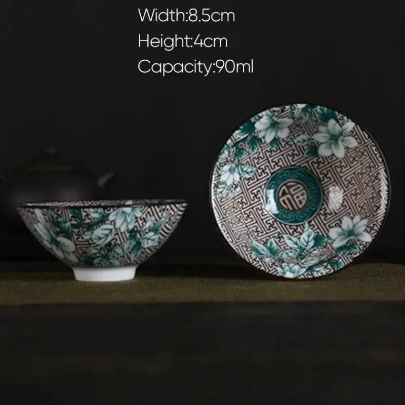 Mit einem Fassungsvermögen von 90 ml ist diese Teetasse ideal für den Genuss Ihrer Lieblingsgetränke. Jedes Stück besticht durch aufwendige handgemalte Details, die jede Tasse zu einem einzigartigen Kunstwerk machen und Ihren Teeritualen Schönheit und Bedeutung verleihen.