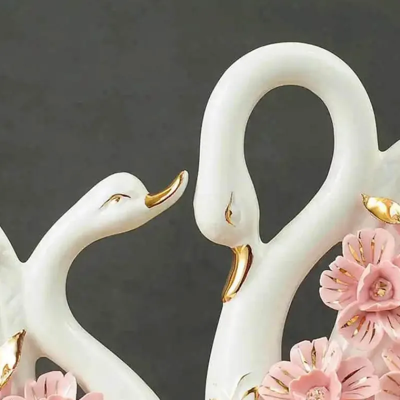Verschönern Sie Ihre Wohnkultur oder finden Sie ein bedeutungsvolles Hochzeitsgeschenk mit diesem eleganten Schwanenskulpturen-Duo. Diese bezaubernden Figuren sind fachmännisch aus hochwertiger Keramik gefertigt und mit glänzender Emaille veredelt. Sie bestechen durch ihre moderne Ästhetik und fügen sich nahtlos in viele Innenräume ein.