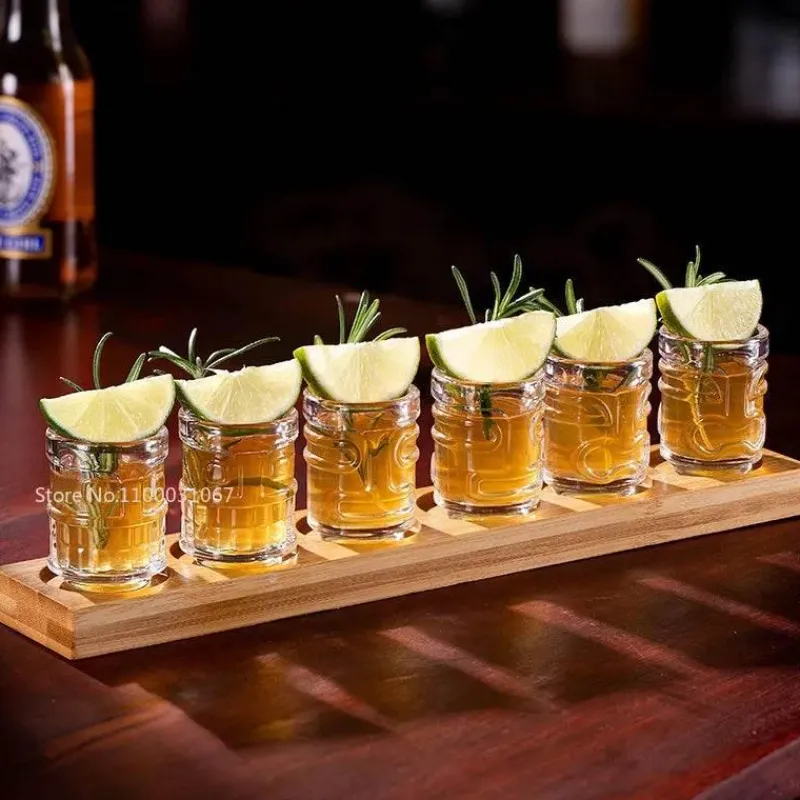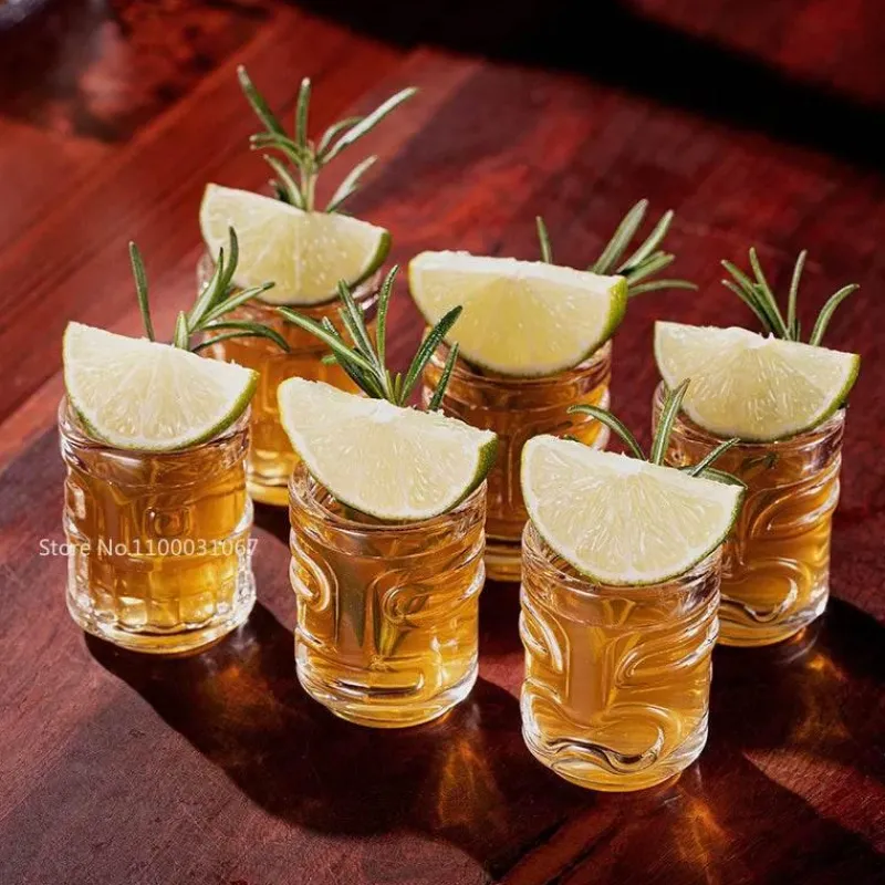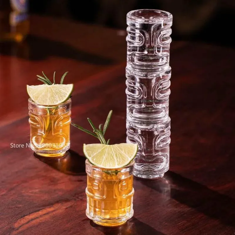 Verwandeln Sie Ihre Cocktailpartys mit unserem Tiki-Schnapsglas-Set, einer bezaubernden Kollektion kleiner Cocktail-Accessoires, die jedem Anlass eine lebendige tropische Note verleihen. Jedes Schnapsglas fasst 50 ml und ist aus hochwertigem, umweltfreundlichem Glas gefertigt. So genießen Sie ein angenehmes Trinkerlebnis, egal ob Sie klassische Cocktails servieren oder Ihre eigenen tropischen Kreationen kreieren.