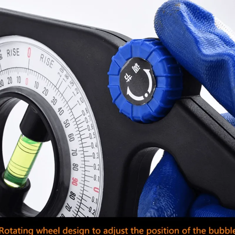 Der multifunktionale Winkel- und Neigungsmesser verfügt über einen ergonomischen Griff für komfortables Halten und einfache Bedienung. Dank der übersichtlichen Vergleichstabelle für Neigungs- und Winkelmessungen ermöglicht dieses Gerät ein müheloses Ablesen der Skalen und eignet sich ideal für Neigungsmessungen und Neigungseinstellungen.