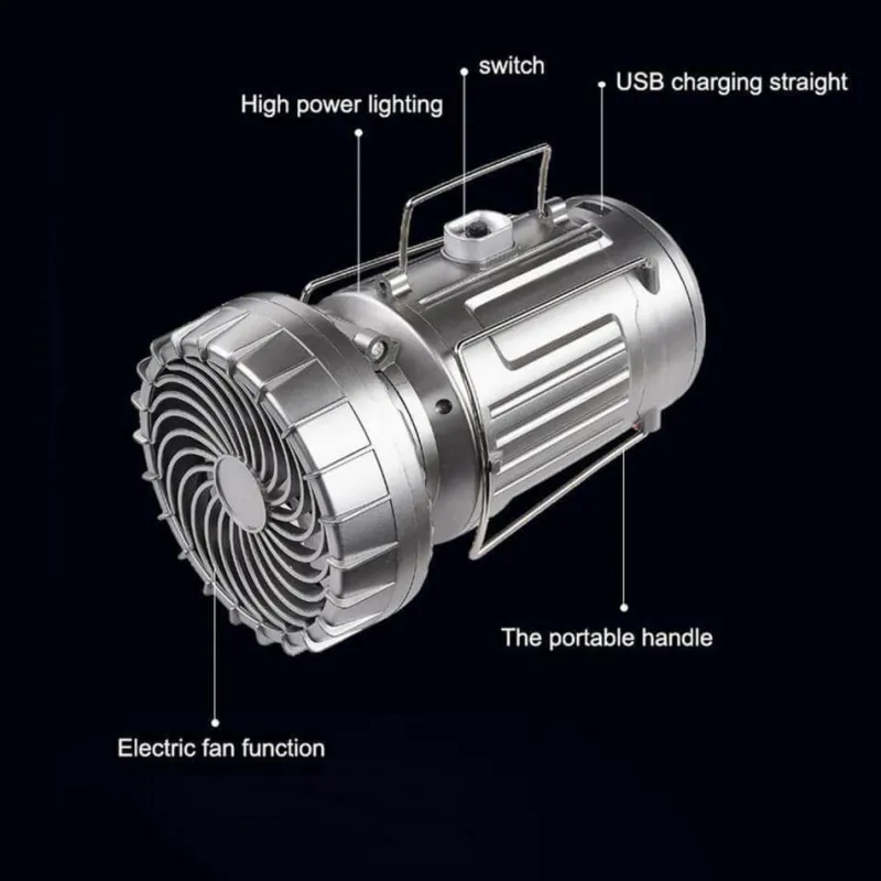 Diese multifunktionale Powerbank-Laterne ist ein vielseitiger Begleiter für draußen. Sie dient als Taschenlampe, Ventilator und tragbares Ladegerät und ist somit ein unverzichtbares Werkzeug für Camping, Wandern, Picknicks und verschiedene Outdoor-Aktivitäten. Kompakt und leicht, passt sie problemlos in Ihre Tasche. Dank ihres wasserdichten Designs müssen Sie sich keine Sorgen um Feuchtigkeit machen und genießen selbst in den dunkelsten Nächten klare Sicht.