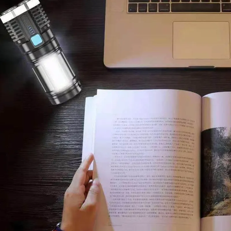 Diese Taschenlampe bietet vier Leuchtmodi – starkes Licht, schwaches Licht, Stroboskop und COB-Seitenlicht – und passt sich so problemlos an verschiedene Situationen an, egal ob Sie einen dunklen Weg beschreiten oder um Hilfe bitten. Dank des eingebauten 1200-mAh-Lithium-Akkus sorgt sie für eine lange Leuchtdauer und ist somit ein zuverlässiger Begleiter auf jeder Expedition.