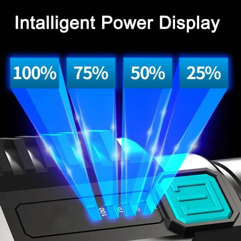 Behalten Sie die Akkulaufzeit Ihrer Taschenlampe mit der vierstufigen Echtzeit-Ladestandsanzeige im Auge. Eine blaue Leuchtanzeige blinkt während des Ladevorgangs und leuchtet bei voller Ladung durchgehend, um klare Informationen zum Status zu liefern.
