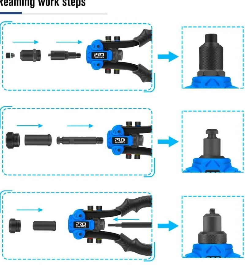 Der 3-in-1-Handnietmuttern-Werkzeugsatz ist eine unverzichtbare Ergänzung für den Werkzeugkasten jedes Heimwerkers und eine wertvolle Hilfe für Mechaniker. Dieses vielseitige Werkzeug ist leicht und benutzerfreundlich, sodass Sie Ihre Projekte effizient und ohne unnötiges Gewicht erledigen können. Egal, ob Sie Muttern oder Nieten anbringen, dieser Werkzeugsatz sorgt für einen reibungslosen Ablauf und eignet sich perfekt für eine Vielzahl von Anwendungen.