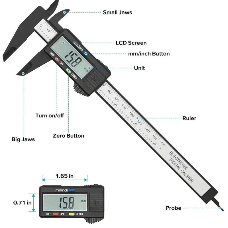 Dieser elektronische digitale Messschieber verfügt über zwei praktische Messmodi, mit denen Sie per Knopfdruck einfach zwischen Zoll- und Millimetermessungen wechseln können. Mit einem Messbereich von 0–150 mm, einer Auflösung von 0,1 mm und einer Genauigkeit von ±0,2 mm erhalten Sie stets präzise Ergebnisse. Dank der intelligenten Nullstellfunktion können Sie an jedem beliebigen Punkt der Skala eine neue Messung starten. Ideal für Differenzialmessungen.