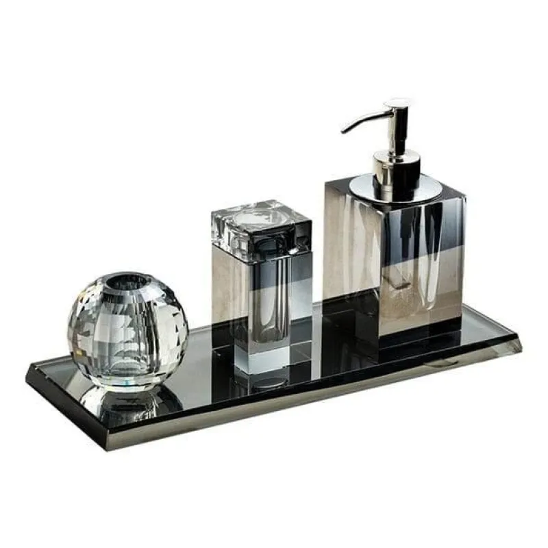 Transform your bathroom into a tranquil retreat with the Julietta Crystal Glass Bathroom Accessories Set. This carefully curated 4-piece collection exudes elegance and sophistication, featuring stunning crystal glass accents that enhance the overall atmosphere of your space.