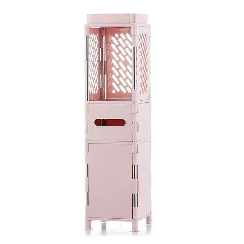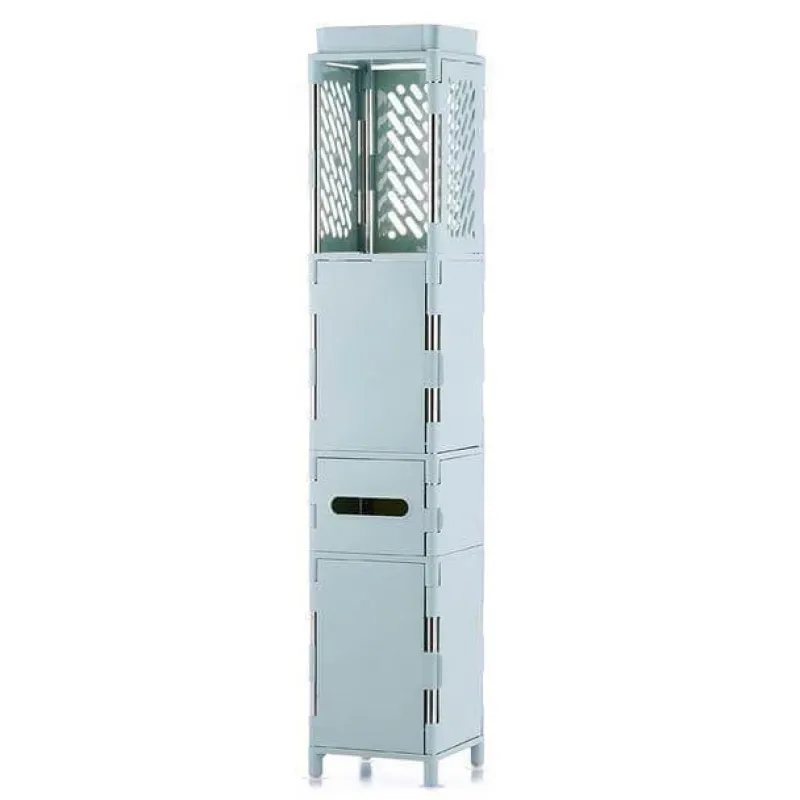 Ausgestattet mit Türen und Regalen bietet dieses Aufbewahrungsmöbel eine praktische Möglichkeit, Handtücher, Shampoo und andere wichtige Utensilien aufzubewahren und so für Ordnung im Badezimmer zu sorgen. Der Schrank aus strapazierfähigem, wasserdichtem PP-Material ist umweltfreundlich und sicher und eignet sich daher perfekt für feuchte Umgebungen.