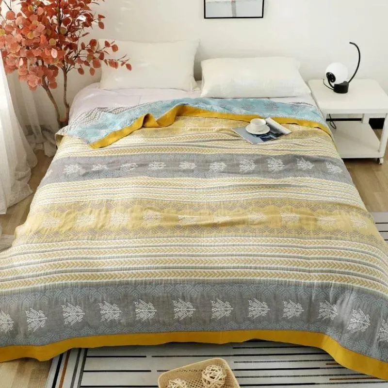 Erleben Sie den Komfort unserer leichten und vielseitigen gestreiften Gazedecke aus 100 % Baumwolle – ideal für den Sommer zu Hause und auf Reisen. Diese Steppdecke eignet sich perfekt für Doppel- und Einzelbetten und dient als erfrischendes Laken oder kuschelige Decke in warmen Nächten. Ob Sie drinnen oder unterwegs entspannen, diese Decke sorgt mit ihrem atmungsaktiven Stoff für zusätzlichen Komfort.