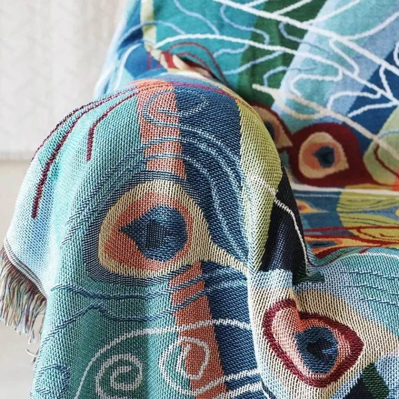 Entdecken Sie den exquisiten Strick-Sofabezug mit bezauberndem Schmetterlings- und Pfauenmotiv, der Ihre Wohnkultur verschönert. Diese Decke aus hochwertigem Polyester-Baumwoll-Mix bietet Komfort und Strapazierfähigkeit für den täglichen Gebrauch.