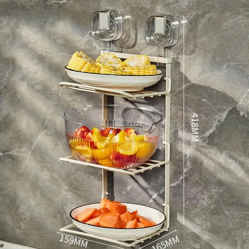 Wir präsentieren das 3-stufige Wandregal für die Lebensmittelzubereitung. Es steigert die Effizienz Ihrer Küche durch effektive Lebensmittelzubereitung, -aufbewahrung, -organisation und -abtropfung. Dieses innovative Küchenzubehör verfügt über drei Ebenen für eine zonierte Aufbewahrung, sodass Sie Ihre Teller und Utensilien übersichtlich aufbewahren können. Verabschieden Sie sich vom lästigen Kochen mit diesem platzsparenden Design, das sicher an der Wand montiert werden kann.