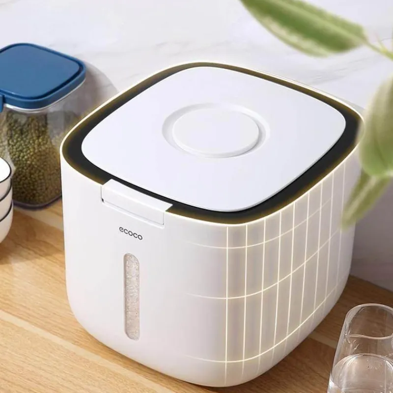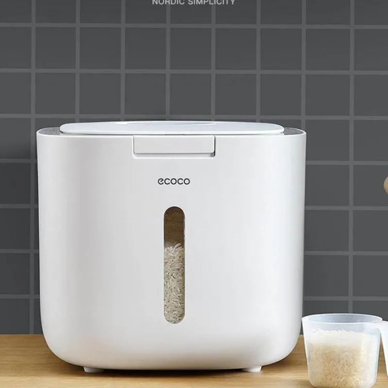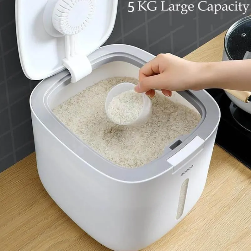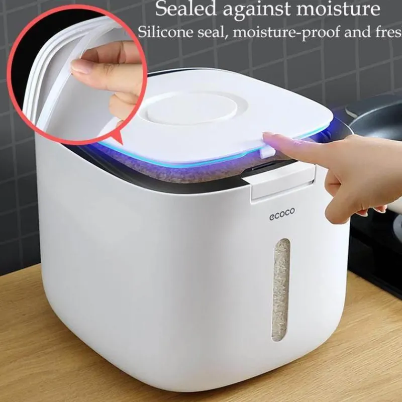 Der feuchtigkeitsbeständige Getreidebehälter ist fachmännisch gefertigt, um Ihre Lebensmittel trocken, frisch und sauber zu halten. Sein zuverlässiger, dichter Verschluss verhindert effektiv die Kontamination durch Bakterien und Feuchtigkeit und sorgt dafür, dass Ihr Getreide länger in optimalem Zustand bleibt.