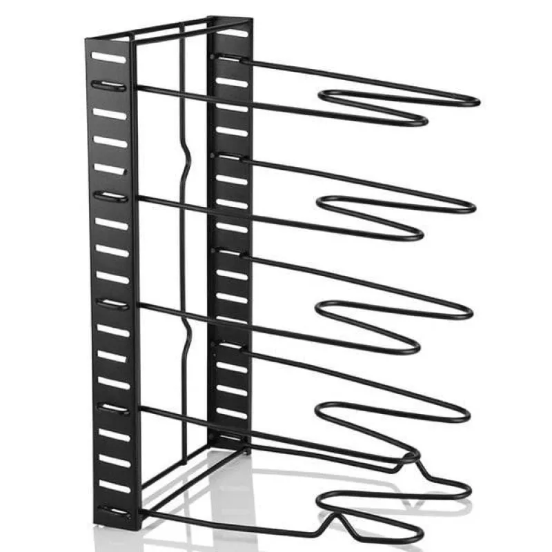 Maximieren Sie Ihren Küchenstauraum mit diesem vielseitigen, mehrstufigen, verstellbaren Pfannenhalter für 8 oder mehr gestapelte Töpfe und Pfannen. Das kompakte Design optimiert den Platz in Küchenschränken, Vorratskammern und auf Arbeitsplatten und sorgt dafür, dass Ihr Kochgeschirr stets griffbereit und übersichtlich ist.