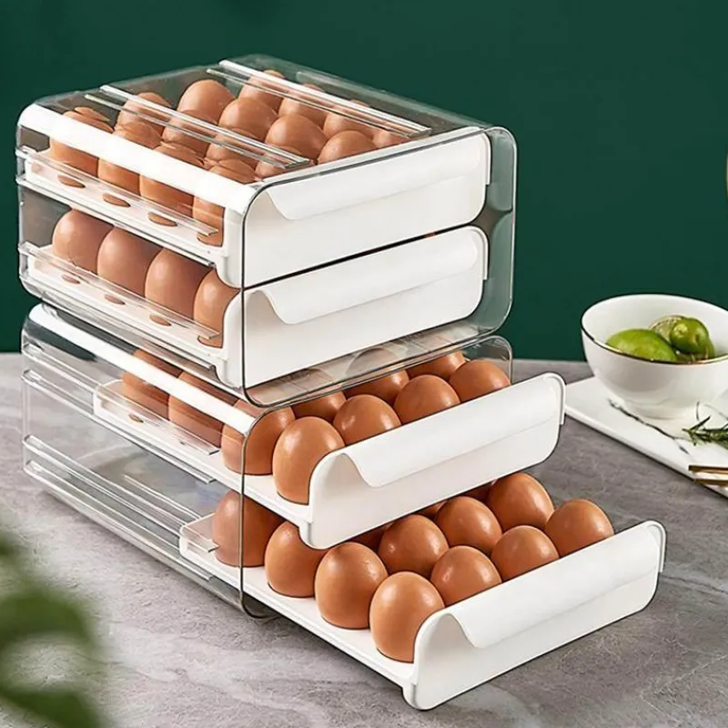 Entdecken Sie eine effiziente Lösung zur Eieraufbewahrung mit diesem doppellagigen, stapelbaren Organizer. Er bietet Platz für bis zu 32 Eier in 32 Einzelfächern. Diese Aufbewahrungsbox sorgt nicht nur für ordentliche Aufbewahrung Ihrer Eier, sondern hilft auch, den Platz in Ihrer Küche optimal zu nutzen.
