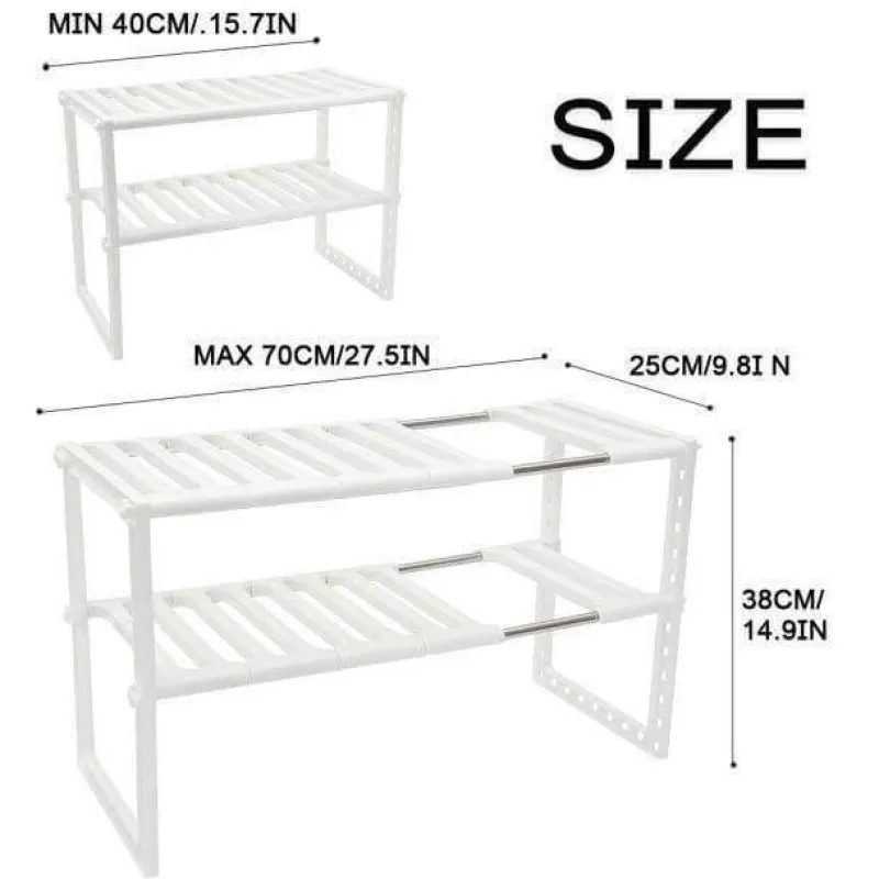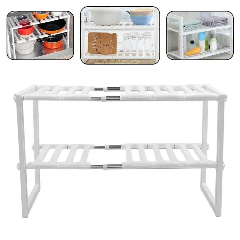 Der verstellbare doppelstöckige Geschirrständer ist eine praktische Aufbewahrungslösung, die Ihre Küchenorganisation verbessert und Platz optimal nutzt. Seine kompakte Bauweise ermöglicht müheloses Geschirrentnehmen und sorgt für eine ordentliche und übersichtliche Arbeitsumgebung. Dieser vielseitige Organizer eignet sich ideal für Teller, Töpfe, Pfannen und Schüsseln und verfügt über verstellbare Ablagen für verschiedene Küchengeschirrgrößen.