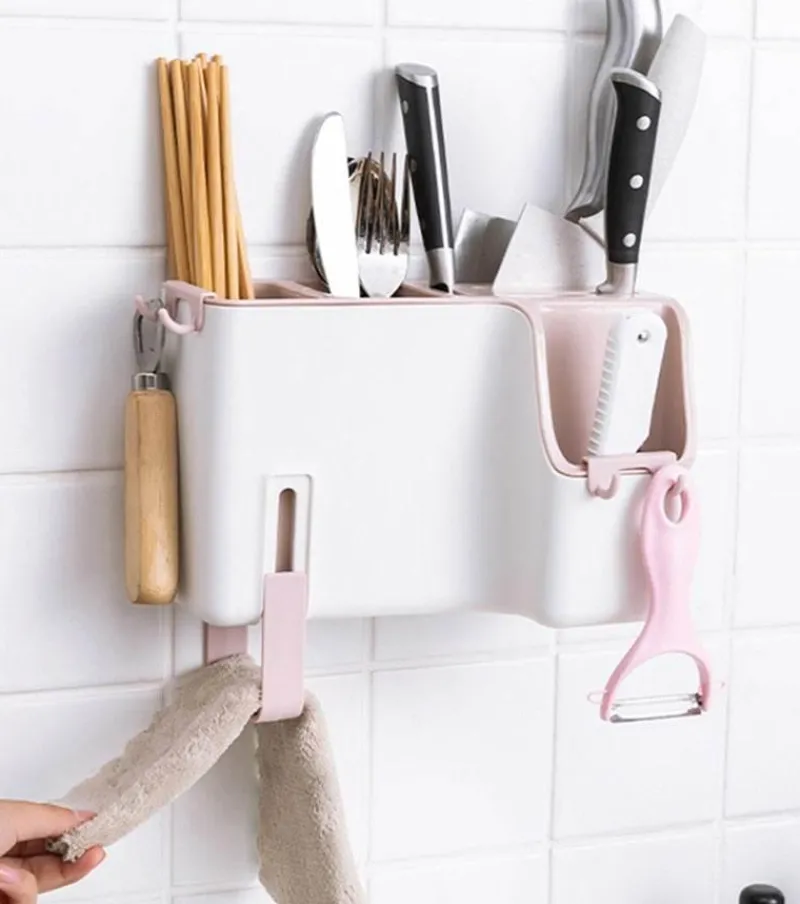 Dank seines Designs mit mehreren Fächern eignet sich dieses Gestell perfekt für die separate Aufbewahrung verschiedener Utensilien wie Löffel, Messer, Gabeln und Essstäbchen. Die Wasserschale am Boden verhindert Tropfenbildung und sorgt für eine saubere Küche, damit Ihre Arbeitsflächen trocken bleiben.
