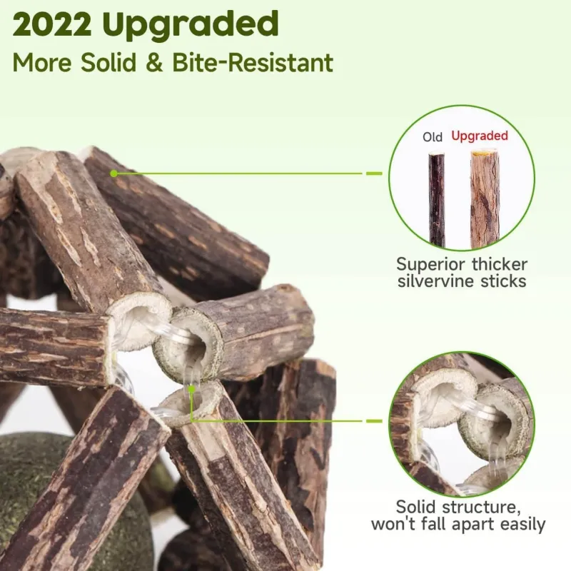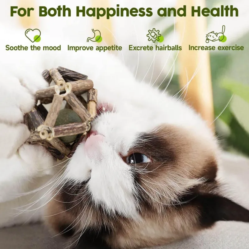 Unsere Minzbällchen fördern nicht nur das Spielvergnügen, sondern unterstützen auch eine gesunde Verdauung. Die Ballaststoffe aus Katzenminze, Silberwein und Gallfrucht fördern die Magen-Darm-Beweglichkeit, tragen zur Reduzierung von Haarballen bei und verbessern die allgemeine Verdauungsgesundheit. Sollte Ihre Katze mit der Zeit das Interesse verlieren, kann ein einfaches Abschneiden der Silberweinstäbe den Duft auffrischen und das Spielerlebnis beleben.