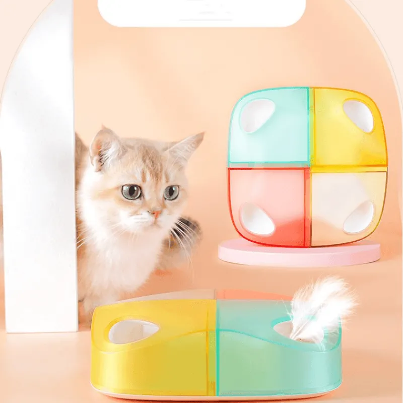 3. Bei Aktivierung springt die Feder zufällig heraus und lädt Ihre Katze zu spielerischen Beschäftigungen ein.