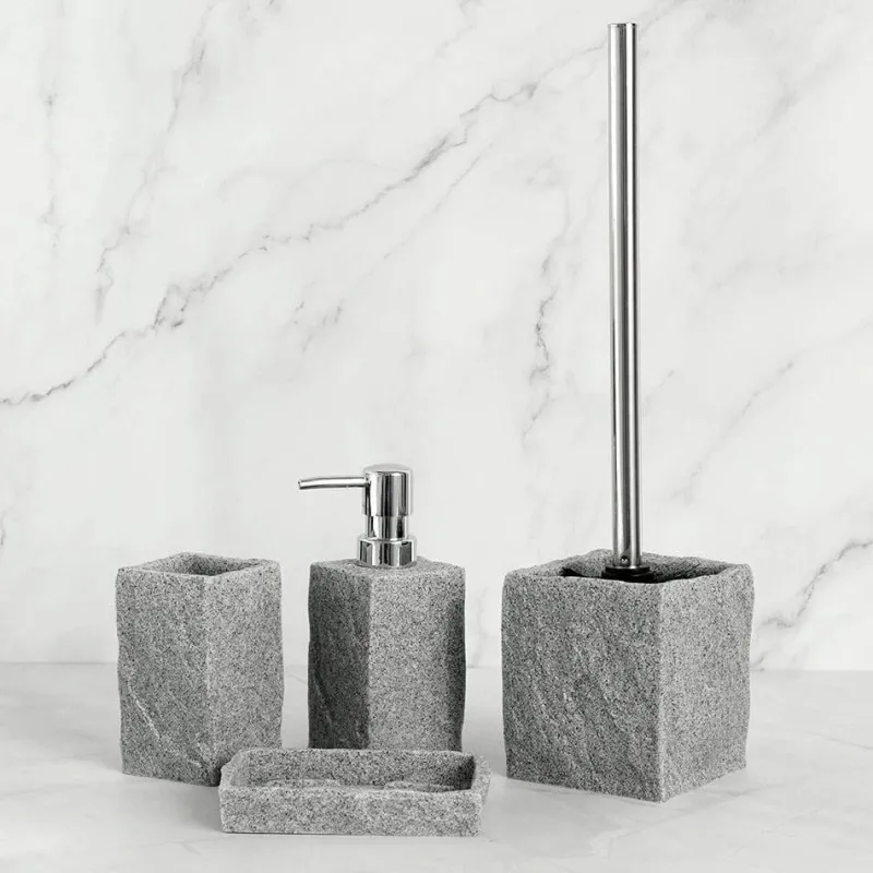 Elevate your bathing space with our modern bath accessories set, which seamlessly blends elegance with functionality. This thoughtfully designed collection includes a soap dish, a soap dispenser, a toothbrush cup, and a toilet brush—each crafted from high-quality materials to ensure durability while enhancing your bathroom’s aesthetics.