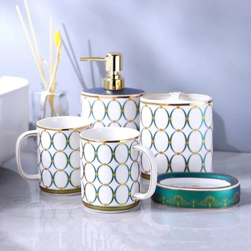 Each piece showcases a solid hue that beautifully complements your decor, while the high-gloss finish adds an elegant touch to the overall aesthetic. Made from durable ceramic, the set features graceful curve detailing that not only enhances your bathroom’s decor but also functions efficiently on your countertop or vanity. Maintenance is straightforward—simply wash with mild soap and water to keep every item looking fresh.