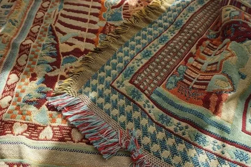 Diese Jacquard-Strickdecke besticht durch Qualität und sorgfältige Verarbeitung und vereint meisterhaft Stil und Funktionalität. Verschönern Sie Ihr Zuhause mit diesem eleganten und anpassungsfähigen Accessoire, das Ihrem Alltag Wärme und Charme verleiht. Verwandeln Sie Ihren Wohnraum mit diesem zeitlosen Stück, das jede Einrichtung ergänzt.