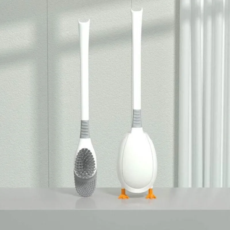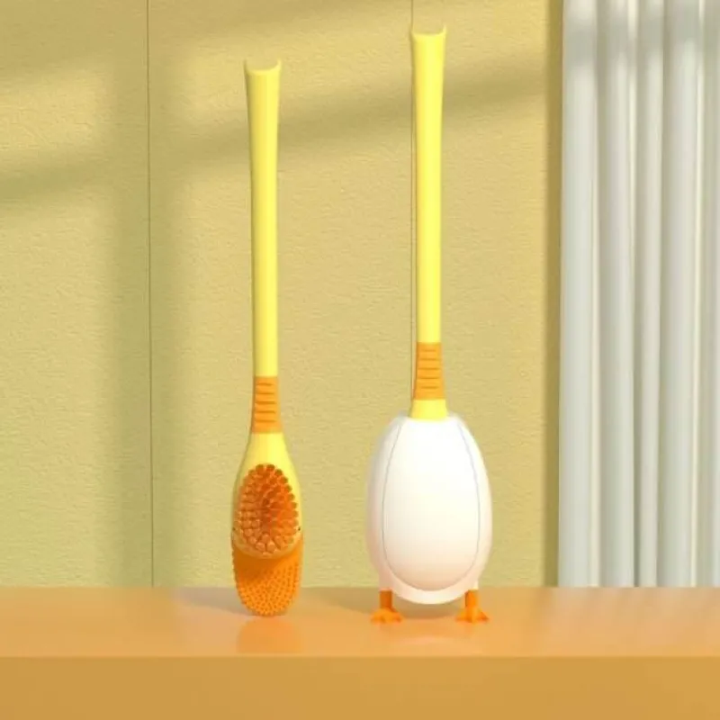 Diese Silikon-Badezimmerbürste in Entenform verfügt über weiche Borsten aus thermoplastischem Gummi (TPR), die sanft zur Toilettenoberfläche sind und Kratzer vermeiden. Die Silikonborsten bieten hervorragende Reinigungseigenschaften, erreichen mühelos die Ränder des Toilettensitzes und bekämpfen effektiv Kalkflecken. Im Gegensatz zu herkömmlichen Bürsten ist dieses Design schmutzabweisend und leicht zu reinigen. Es behält seine ursprüngliche Form und sorgt so für eine gleichbleibende Reinigungsleistung.