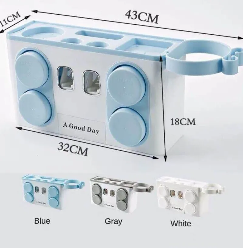 Dieses praktische Gerät bietet Platz für zwei bis vier Personen und eignet sich somit ideal für Gemeinschaftsbäder. Es verfügt über zusätzliche seitliche Haken und eine spezielle Ablage für Haartrockner, sodass Sie Ihre Pflegeutensilien übersichtlich aufbewahren können. Der automatische Zahnpastaspender und der integrierte Zahnbürstenhalter erleichtern Ihnen den Alltag und sorgen mühelos für Ordnung.